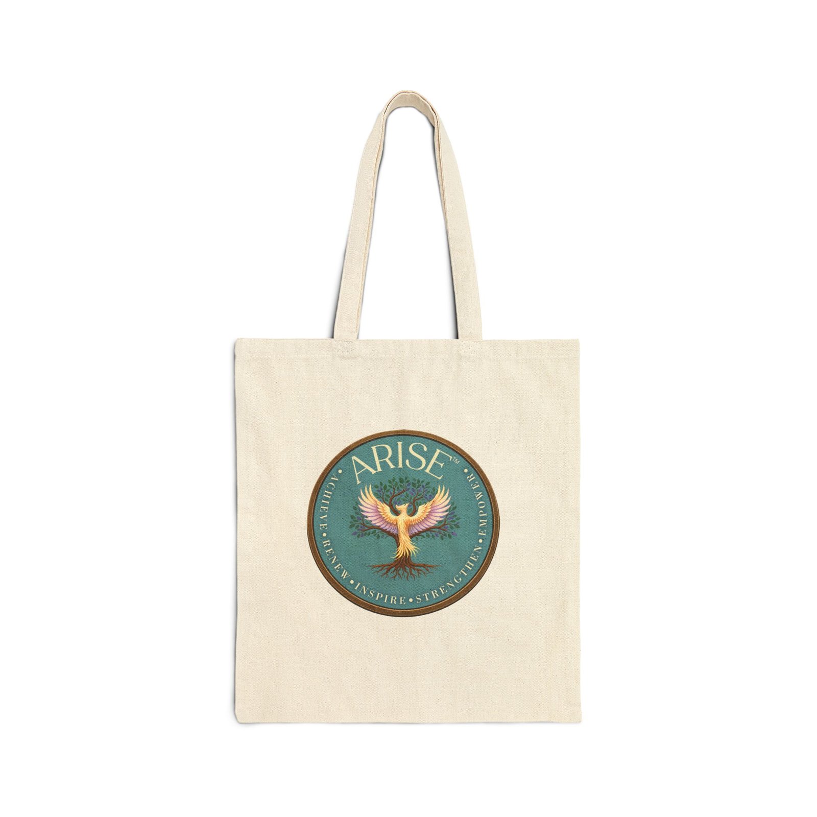 This sturdy canvas tote features the ARISE™ phoenix tree — a symbol of growth, resilience, and renewal. Designed for everyday use, it’s perfect for work, errands, or quiet moments in between.
